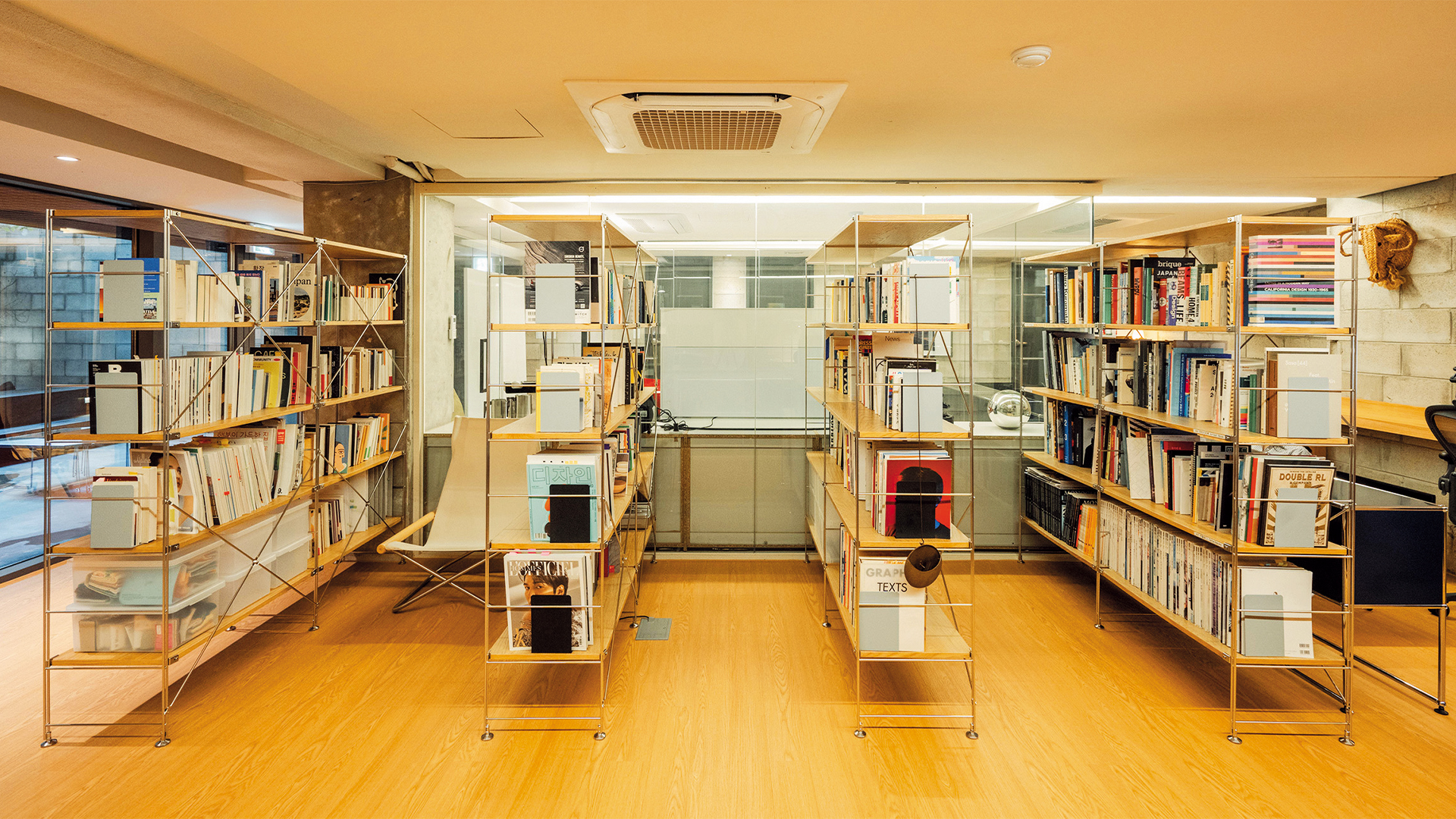 책을 키우는 온실. 햇빛이 닿는 칸에는 변색에 덜 민감한 책들을, 안쪽으로 갈수록 소중히 아끼는 책들을 배치했다. 에세이·문학·잡지, 비즈니스·음악, 디자인·미술, 건축·패션·전시도록 순으로 나눠 꽂지만, 결국 첫 번째 기준은 ‘빛 차단’이다.