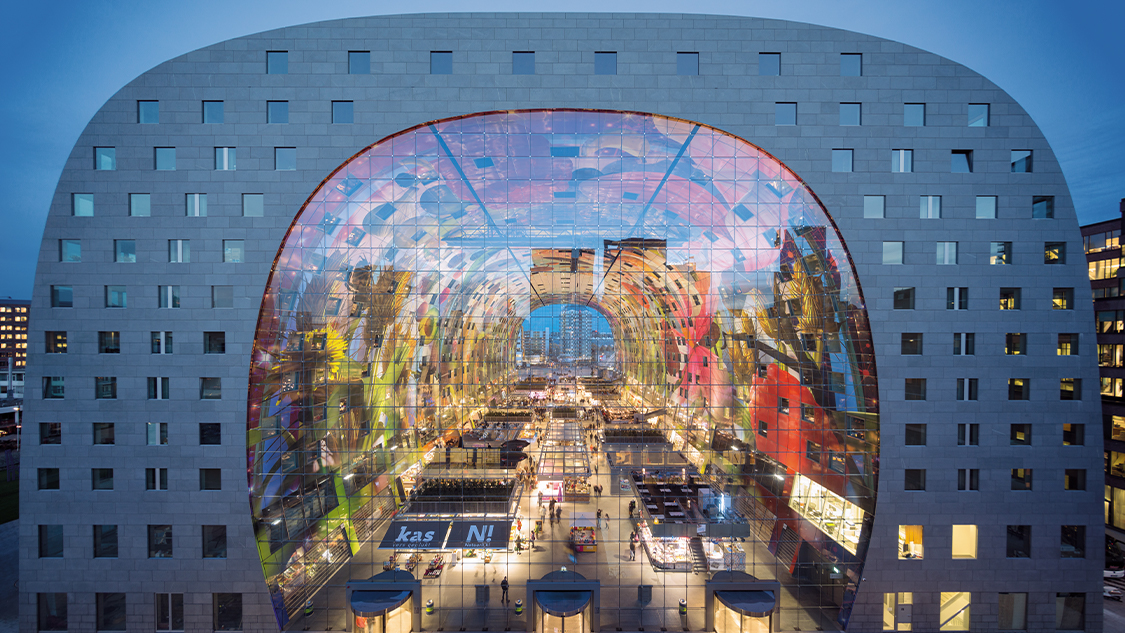 ©Ossip van Duivenbode 2014년 문을 연 네덜란드의 마르크탈(Markthal)은 도시 재생 건축을 상징하는 랜드마크다. 설계를 맡은 세계적인 건축가 위니 마스(Winy Maas)는 ‘도시의 기능은 분리되지 않을 때 가장 활기를 띤다’는 믿음으로 시장, 식당, 주거, 사무 공간을 하나의 아치형 돔 안에 엮어냈다. 실제 일부 아파트에서는 창을 통해 시장 풍경이 내려다보인다. 돔 안에 들어선 가게들은 원래 지역의 노천시장 상인들이 자리를 옮겨 만든 것이다. 덕분에 입주민과 관광객이 함께 어울리며 신선한 식재료와 음식을 사고 즐기는 장면이 이어진다. 무엇보다 천장을 가득 채운 초대형 벽화 ‘풍요의 뿔(Horn of Plenty)’이 이곳을 하나의 거대한 포토 스폿으로 만든다.