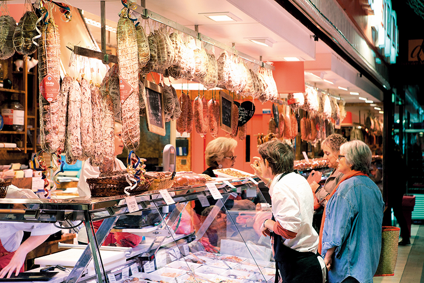 Lyon Tourist Office‘프랑스 미식의 성전’이라 불리는 리옹의 레 알 드 리옹 폴 보퀴즈(Les Halles de Lyon Paul Bocuse). 1859년 처음 문을 열었고, 1971년에는 거장 셰프 폴 보퀴즈의 이름을 붙이며 지금의 명성을 얻었다. 2006년 대대적인 레노베이션을 거쳐 현대적인 푸드 마켓으로 발돋움한 뒤 리옹이 ‘세계 미식의 수도’라 불리는 데 결정적인 역할을 하기도 했다. 3000㎡가 넘는 실내 공간에는 50여 개의 점포와 레스토랑이 들어서 있다. 샤르퀴트리와 치즈, 굴과 게 같은 해산물, 프랄린 타르트 같은 리옹 특산 디저트까지 프랑스 각지의 장인들이 선보이는 식재료, 음식이 한자리에 모여 있다.