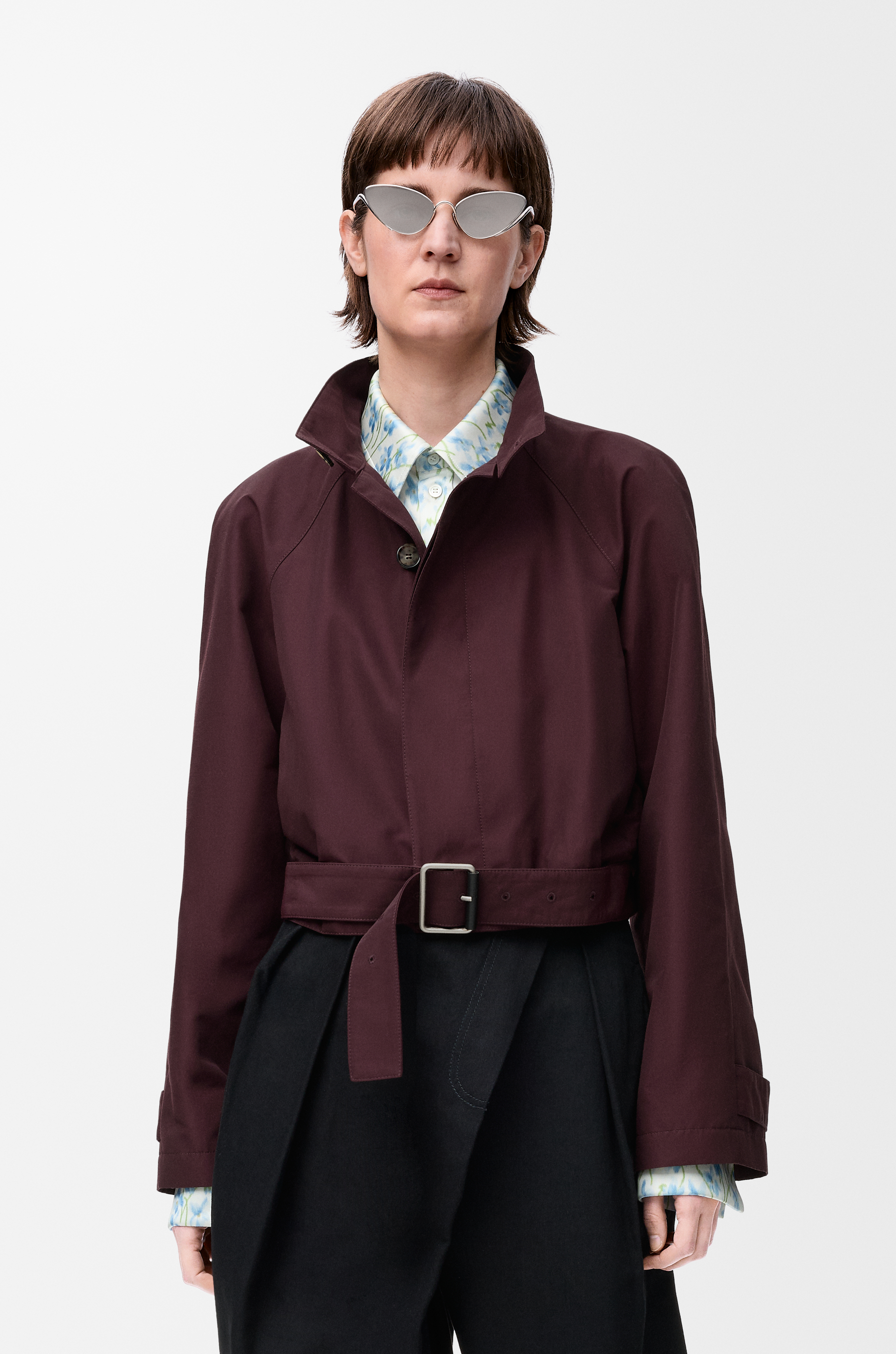 가벼운 코튼 혼방 소재로 어떤 룩에나 자연스럽게 매치할 수 있는 아이템. 트렌치 코트의 공식을 따르지만 짧은 기장과 하이 칼라, 밑단의 버클 장식 등으로 특별함을 표현했다. 240만원.