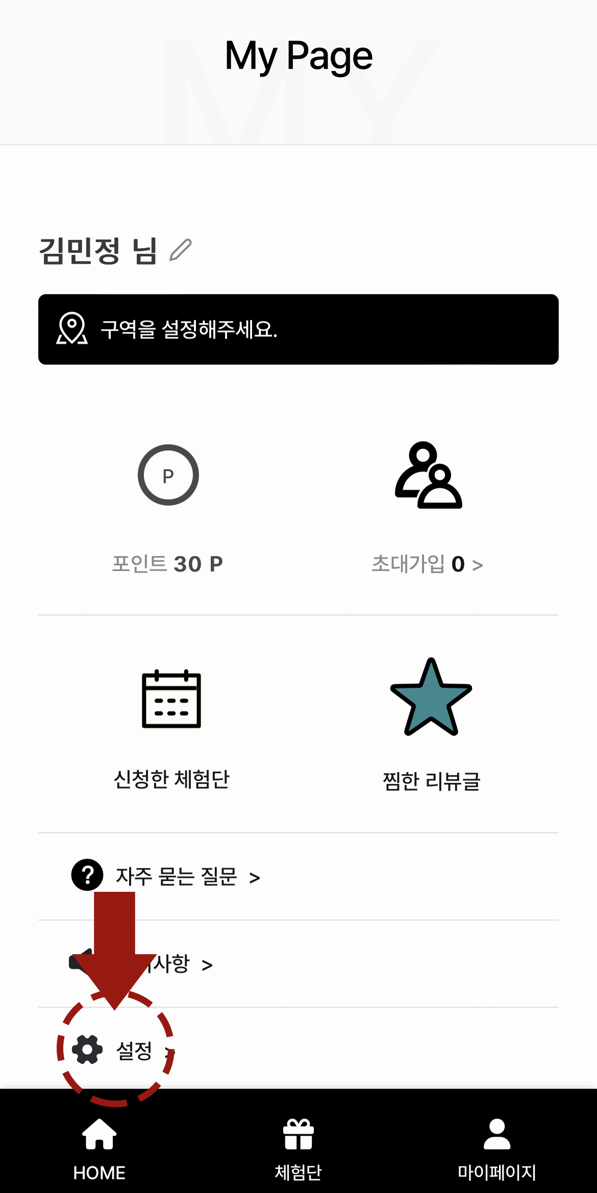 마이페이지 ▶ 설정 ▶ 푸시알림 ▶ ON
