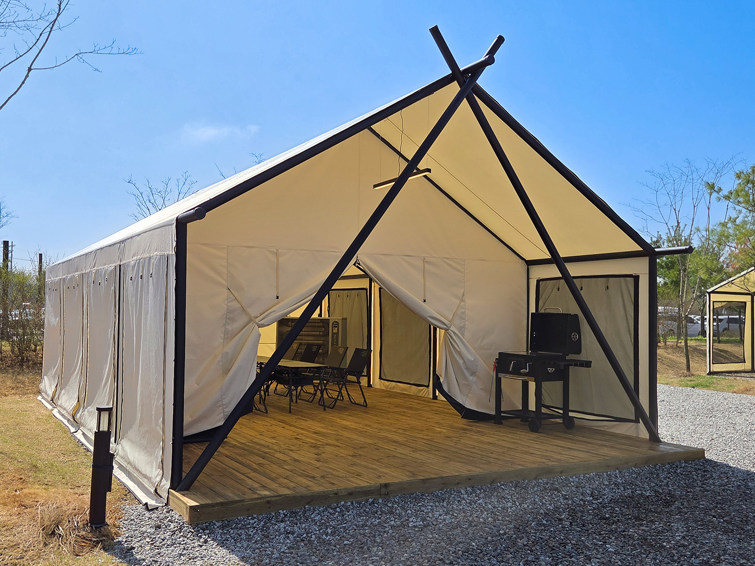 임진각 평화누리캠핑장 내에 있는 당일 글램핑존. 도심과 동떨어져 평화롭고 여유로운 이곳만의 분위기를 만끽해보자. 예약은 평화누리캠핑장 홈페이지에서 예약할 수 있으며, 오전 4시간, 오후 5시간으로 하루 2타임 운영된다.