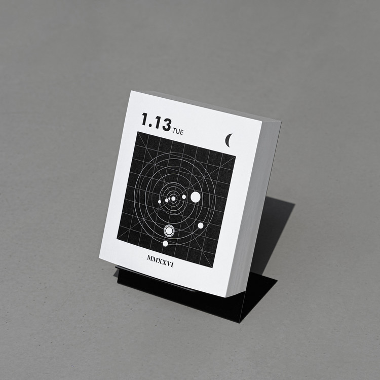 한 장씩 뜯을 때마다 태양계의 궤도와 달의 모양이 바뀌는 걸 확인할 수 있는 일력. 거대한 우주가 움직이는 것을 확인하며 시간의 흐름을 느끼는 낭만을 담았다. 3만5000원.