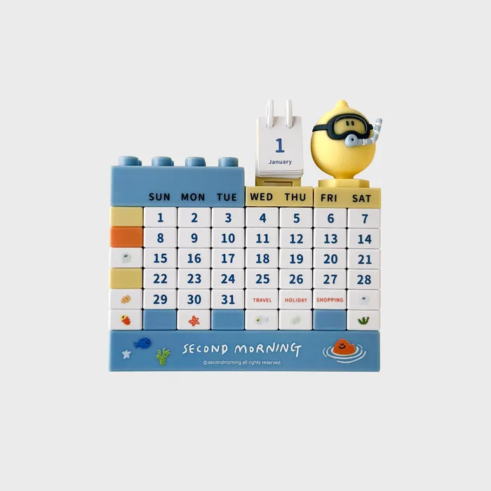 귀여운 조각 블록을 조립해 매월, 매년 사용할 수 있는 만년달력이다. 귀여운 색깔과 동글동글한 모서리로 누구에게나 불호없이 다가가는 디자인이 특징. 매월 바뀌는 날짜를 조립하는 재미도 있다. 3만5000원.