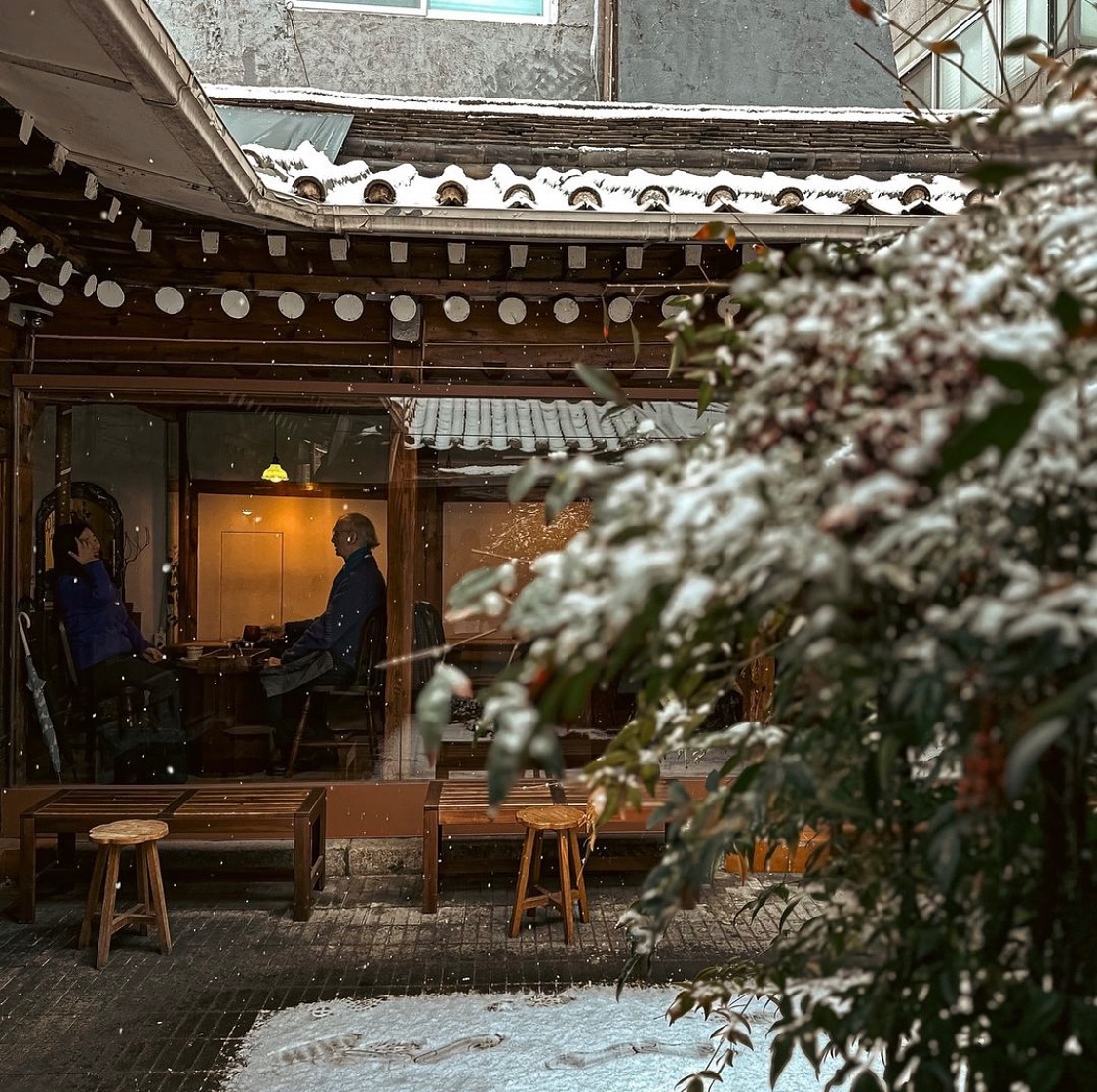 눈이 올 때면 중정이 있는 한옥의 아름다움이 가장 극대화된다. 넓게 낸 통창 너머로 소복소복 눈 쌓이는 걸 보고 있노라면 마음까지 편안해진다. 여기에 수준 높은 커피까지 더해지니 겨울의 정취를 제대로 느껴보자.