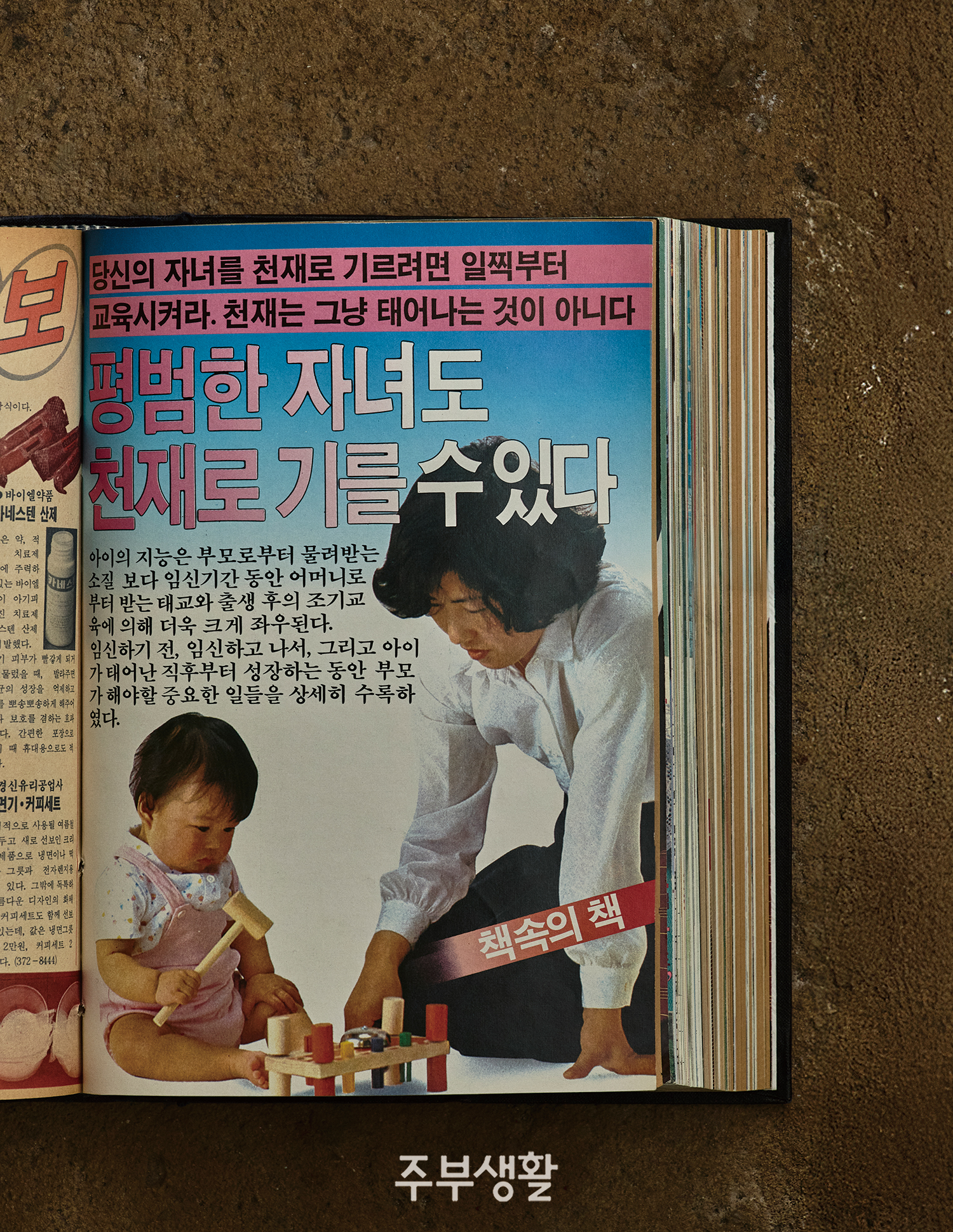 1969년 <주부생활>은 ‘어린이와 벌’ 칼럼 등 체벌을 해야 잘 큰다는 전통 육아 방식을 비판하고 어린이는 어른의 소유물이 아니라는 기사를 연달아 게재하며 체벌을 대체할 수 있는 좋은 교육의 기준을 제시했다. 이후 1980년대에 서구식 육아법이 도입된 이후에도 전통적 훈육과 충돌하며 과도기가 이어졌다. 1984년 5월호에서는 ‘평범한 자녀도 천재로 만드는 조기교육과 태교’ 칼럼을 통해 임신기부터 시작되는 육아의 중요성을 설파하고, 영유아기 애착 형성의 중요성과 예체능 교육까지 심도 있게 다루었다. 1990년 ‘아파트 육아 이렇게 하라’에는 도시 육아의 태동와 함께 육아 상담 기관이라는 말이 등장했다.