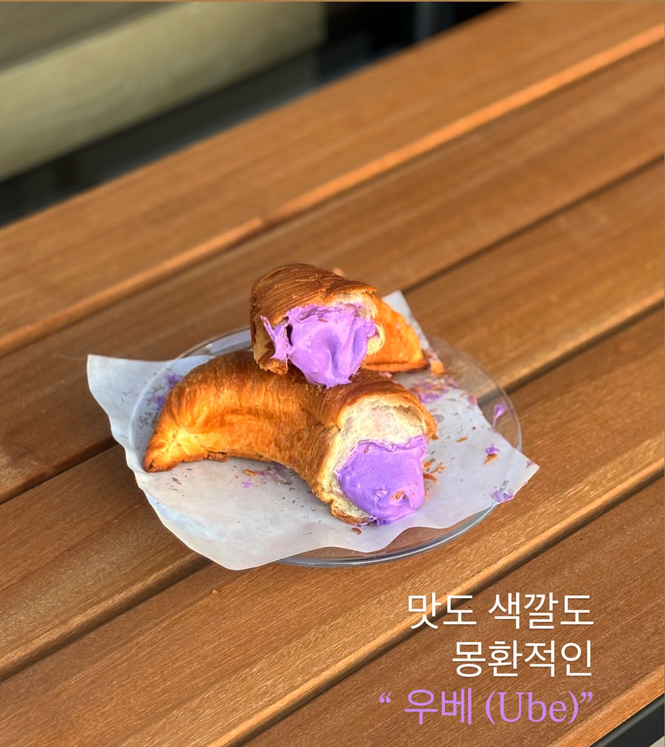 투명한 코코넛 워터 위에 진한 보랏빛의 우베가 구름처럼 둥둥 떠있는 비주얼의 음료다. 보기에는 가볍게 넘어갈 것 같지만 우베의 단맛, 코코넛의 풍미가 결코 가볍지 않은 여운을 남긴다.